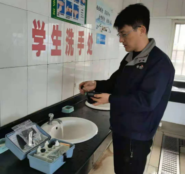 水務工作人員進學校檢測水質(zhì)