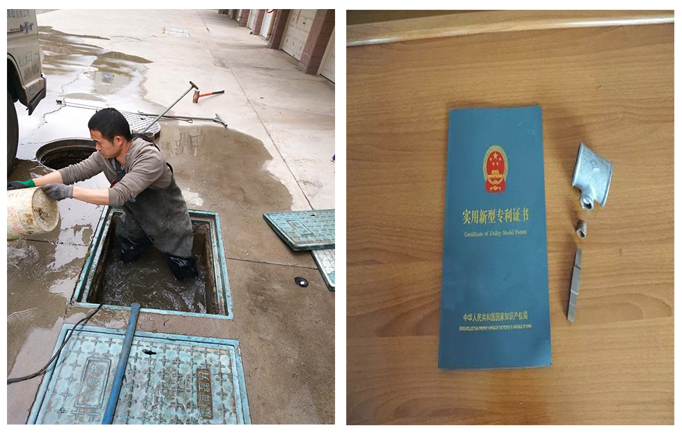 各項(xiàng)工作已經(jīng)輕車熟路,得心應(yīng)手了,這時(shí)候的他又開始潛心鉆研工作上的創(chuàng)新發(fā)明。在一次維修過程中他發(fā)現(xiàn)了一個(gè)棘手的問題,就是管件內(nèi)部斷裂里絲的剔除,一直以來大家都是手工用折斷的鋼鋸條一點(diǎn)一點(diǎn)鋸開,再用螺絲刀撬下來,這種操作需要在狹小的表井里蹲上個(gè)把鐘頭,直到腰酸背痛雙腳發(fā)麻。這時(shí)他就想,可不可以發(fā)明一個(gè)便利的工具,可以快速剔除斷絲呢?他在和自己的科長(zhǎng)、同事們說了自己的想法后,得到大家的一致贊同和支持。接下來的時(shí)間,他不知疲倦的畫圖、加工、實(shí)驗(yàn)、更換材料、更新工藝,請(qǐng)朋友幫忙鑄造、試用,再改良、鑄造、再試用,最終做出一個(gè)經(jīng)久耐用的小工具,實(shí)現(xiàn)了一敲一擰一分鐘剔除一個(gè)斷絲,極大降低了勞動(dòng)強(qiáng)度,提高了工作效率。2017年,他自主設(shè)計(jì)制作的 “嵌入式斷絲取出器”,深得同事們的好評(píng),還成功申請(qǐng)到人生第一個(gè)實(shí)用新型專利。2018年這項(xiàng)專利獲得威海市創(chuàng)新成果三等獎(jiǎng),年底他本人也榮獲了水務(wù)集團(tuán)“優(yōu)秀職工”稱號(hào)。在后來的日子里,他又陸續(xù)發(fā)明了許多小工具,有裝在口袋里的迷你小鉤子、有周轉(zhuǎn)水表專用快速扳手、有應(yīng)對(duì)狹小空間的而發(fā)明的專用小扳手等等,在他的帶動(dòng)下,逐漸激發(fā)了廣大維修人員發(fā)明創(chuàng)造的激情。